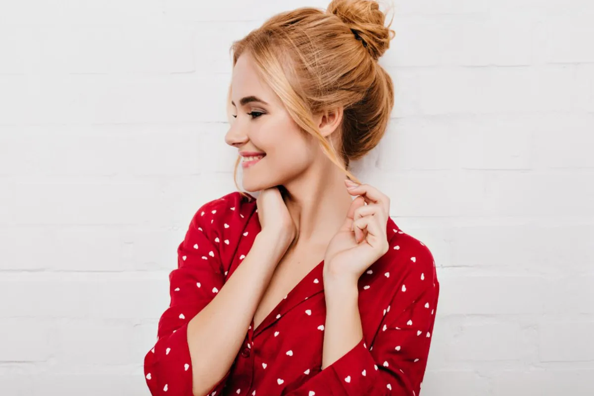 Быстрый слегка неаккуратный пучок со свободными прядями спереди выглядит великолепно. Создаёт эффект «только что проснулась, но всё равно красива». Экспертное мнение: пучок не должен быть слишком тугим. Лёгкая небрежность – ключ к успеху.