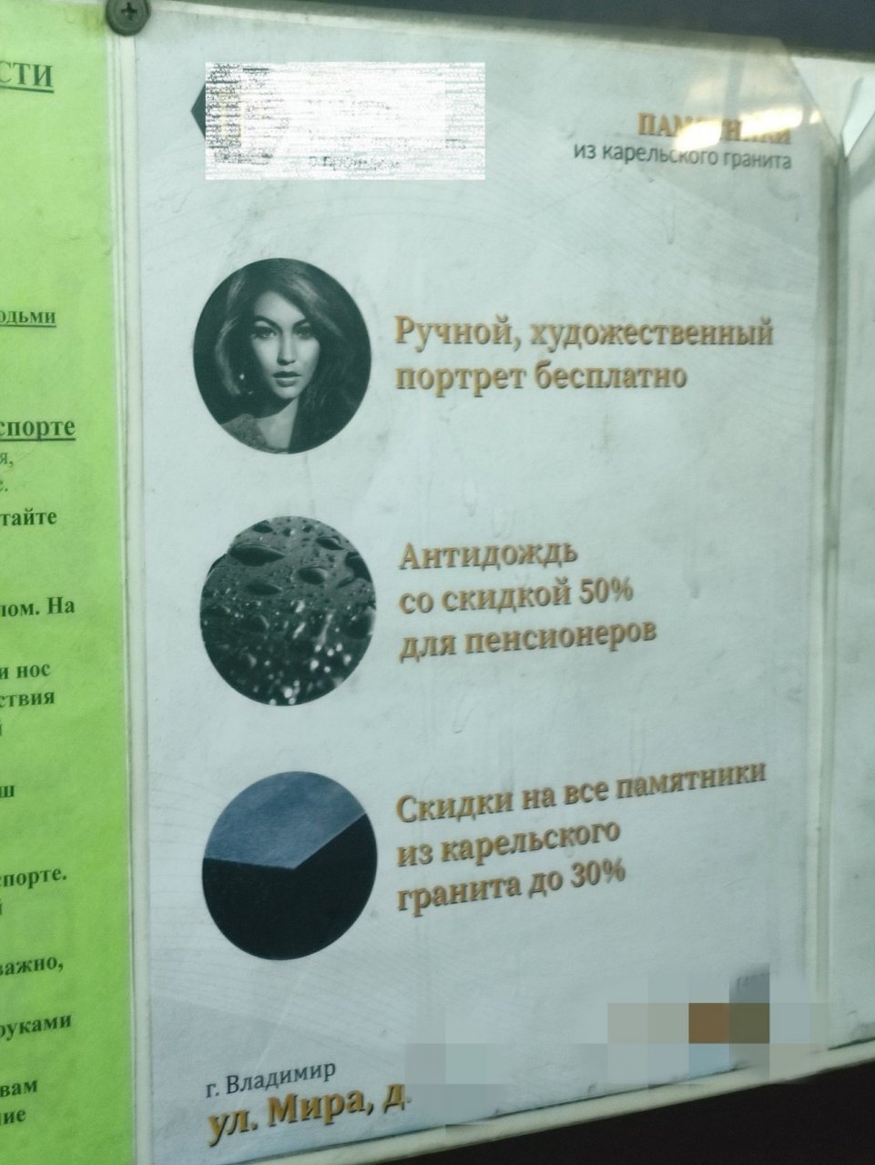Жители Владимира обратили внимание на рекламные листовки, развешанные в троллейбусах города. Одна из фирм, занимающаяся изготовлением памятников, представила свои услуги и в качестве примера изображения для надгробия использовала фотографию всемирно известной модели Джиджи Хадид.