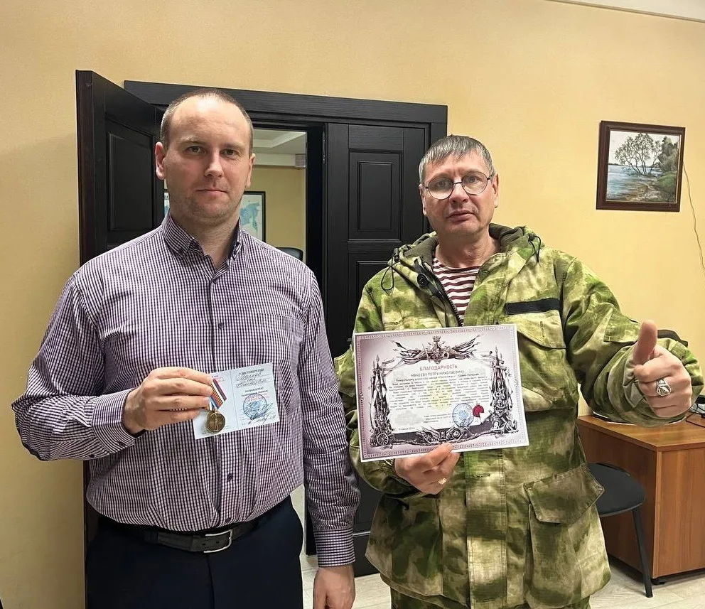 Директору завода "Промсвязь" (г. Юрьев-Польский) Петру Николаевичу Макееву и всему коллективу предприятия вручен памятный знак "От благодарного луганского народа" - за понимание трудностей ситуации на Донбассе и постоянную реальную помощь бойцам.