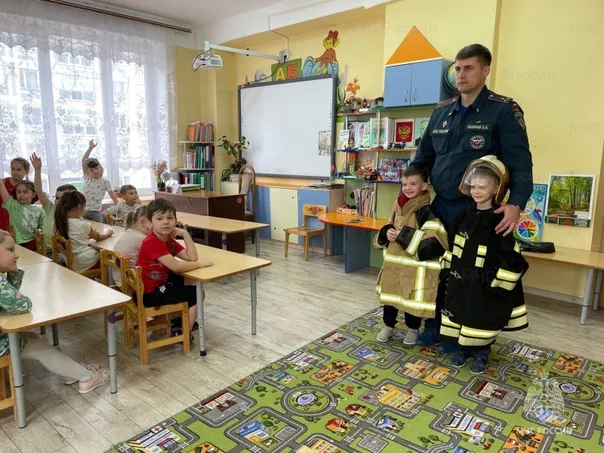 В детских садах № 5 и № 11 в Коврове занятия с детьми провел начальник службы пожаротушения 4 пожарно-спасательного отряда Евгений Таланов.