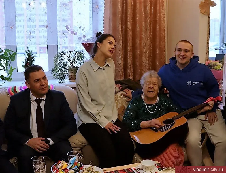 Дмитрий Наумов поздравил участницу ВОВ, играющую на гитаре, со столетием