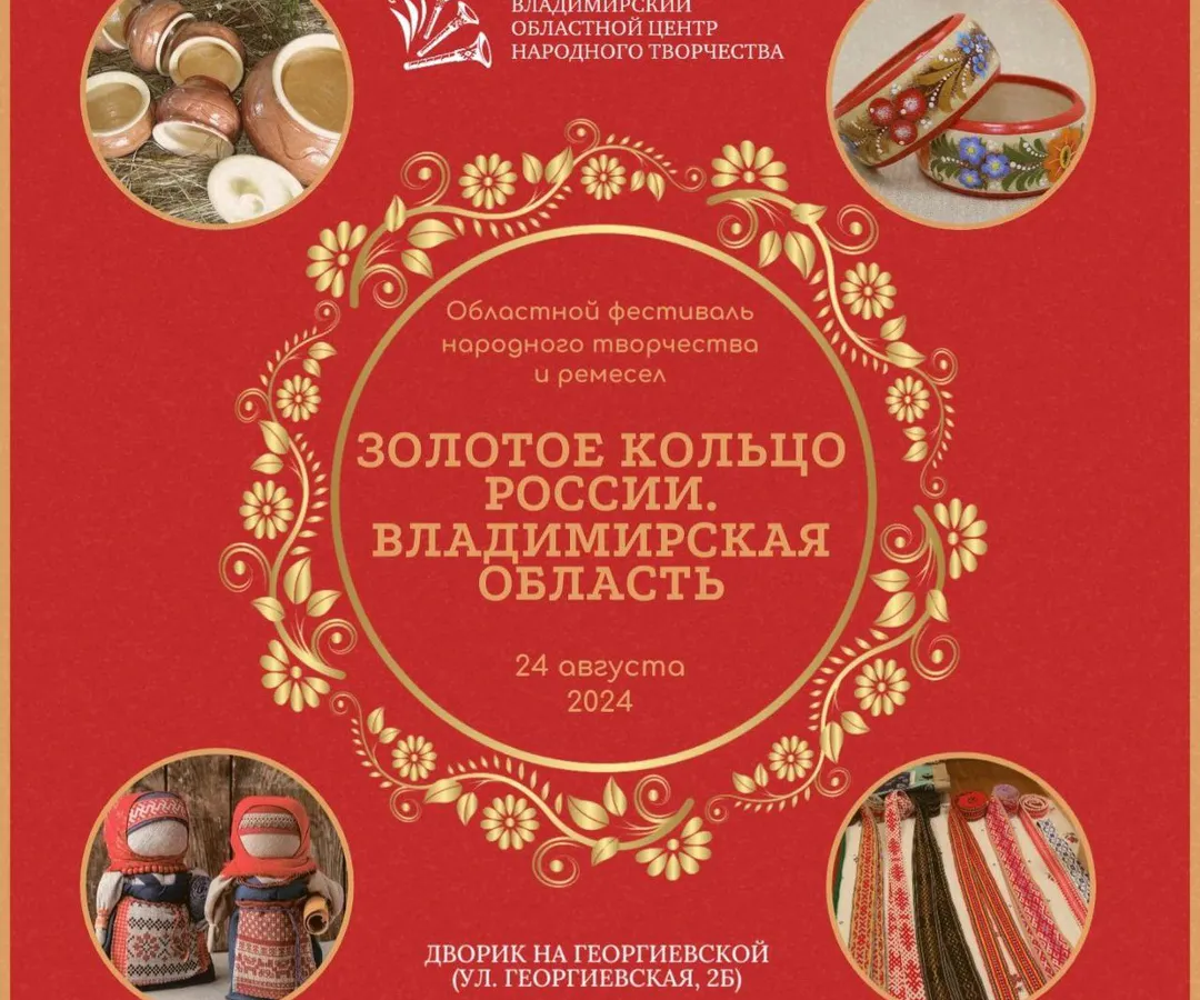 Областной фестиваль народного творчества и ремесел ждет гостей 24 августа. Он станет одним из мероприятий программы празднования 80-летия Владимирской области. Как сообщает региональный Минкульт, местом проведения станет Дворик на Георгиевской улице в областном центре.