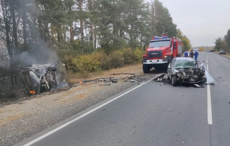 Два погибших и горящее авто: под Муромом лоб в лоб столкнулись легковушка и микроавтобус