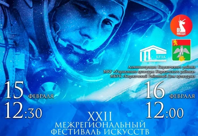 В предстоящие выходные в Киржаче состоится XXII Межрегиональный фестиваль искусств «Звёздный полёт». Это мероприятие посвящено памяти первого космонавта Земли Юрия Алексеевича Гагарина и пройдёт в рамках Года защитника Отечества в России.