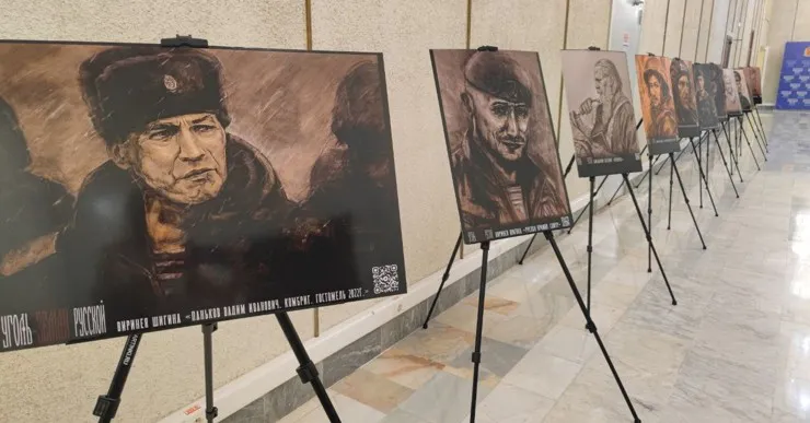 Особое внимание зрителей привлекла выставка портретов бойцов, выполненных углём. Работы созданы Виринеей Шигиной, молодой художницей, впервые отправившейся на фронт в 19 лет. Она писала портреты с натуры, запечатлевая лица сильных духом солдат.