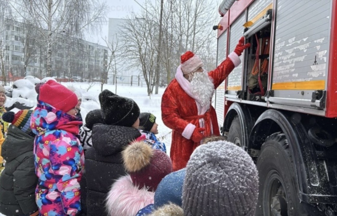 Воспитанников детского сада в Коврове утром ожидал гость – пожарный, переодетый в Деда Мороза. В детский сад № 23 прибыла пожарная машина. Дети с удивлением увидели, как из нее выходит не просто пожарный, а Дед Мороз.