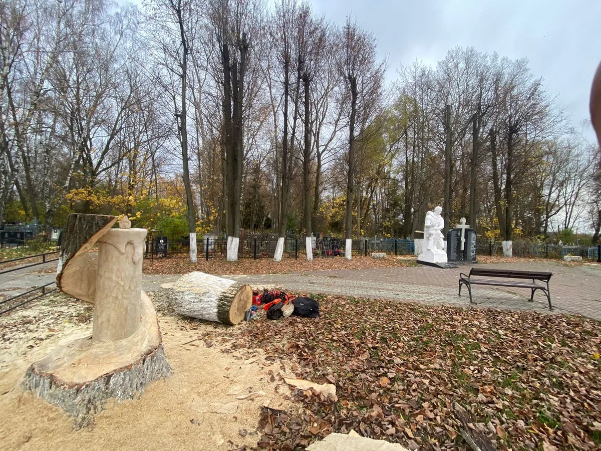 В официальной группе администрации Юрьев-Польскоого района появился пост о необычном памятнике, который создал неизвестный автор. Материалом для него послужил ствол погибшего дерева. Местом стала братская могила на городском кладбище. Как описывают власти, на оставшемся после спила пне как бы загорается образ свечи - остаток дерева превратился в символ света и защиты.