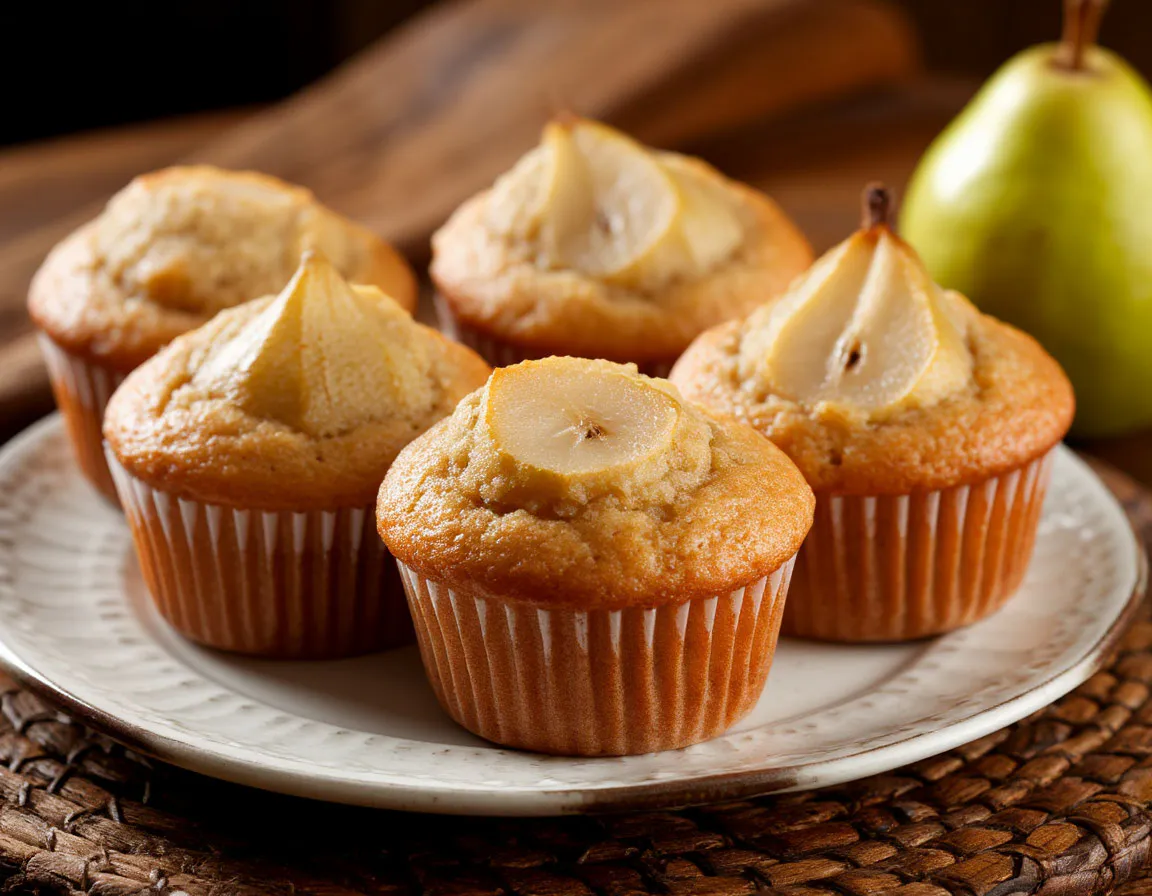 Для наших будущих шедевров нам потребуется несколько простых ингредиентов. Возьмите сто шестьдесят граммов пшеничной муки, примерно сто граммов сахара и пару чайных ложек разрыхлителя. Также подготовьте восемьдесят граммов сметаны, два куриных яйца и шестьдесят граммов растительного масла. Не забудьте про две или три сочные груши.