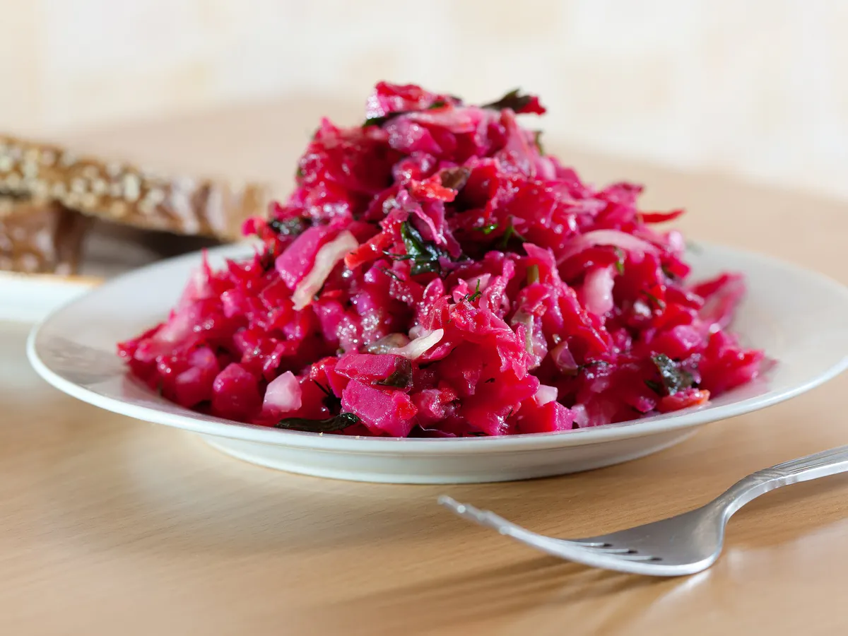 Изумительно вкусная закуска: готовим свекольный салат с жареным лучком, который понравится всем домочадцам