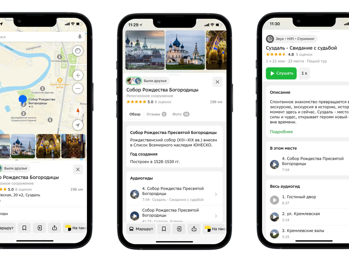 Уже сейчас в 2ГИС доступны более 600 рассказов. Во время прогулок из аудиогидов можно узнать о том, как суздальские купцы в XIX веке строили Гостиный двор (сейчас — Торговые ряды), услышать историю создания главной Святыни Владимира — храма Покрова на Нерли, который основан в период правления значимых деятелей домонгольской России или совершить путешествие по другим культурным точкам.