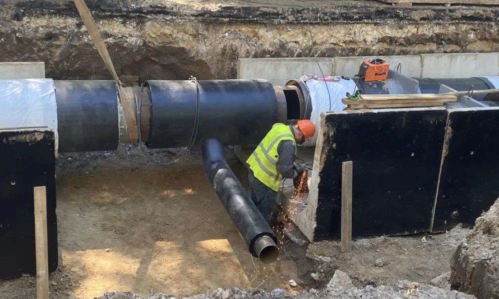 На каждом участке трубы проверяют под давлением, чтобы найти слабые места. Если где-то есть повреждения, их ремонтируют и снова проводят проверку. До начала отопительного сезона планируют проверить все участки.