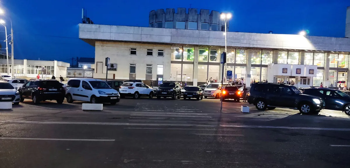 Фото - красочное свидетельство его слов: разметка пешеходного перезода практически стерта с асфальта. Но даже при условии, что ее в темноте каким-то чудом удастся разглядеть, то конце пути возникнет новый квест: нужно умудриться сманеврировать между прижавшимися друг к другу авто. А ведь вокзал -первое, что видят прибывающие туристы и гости нашего города!