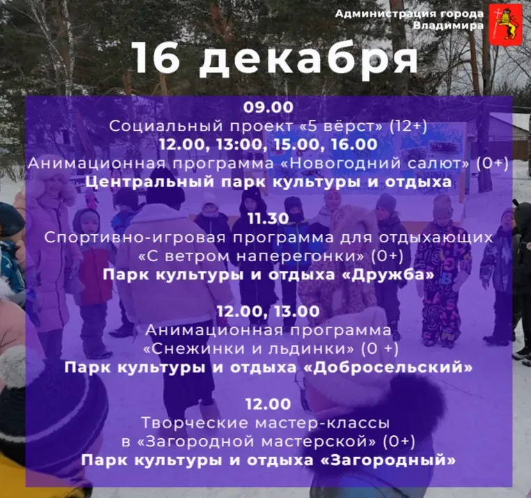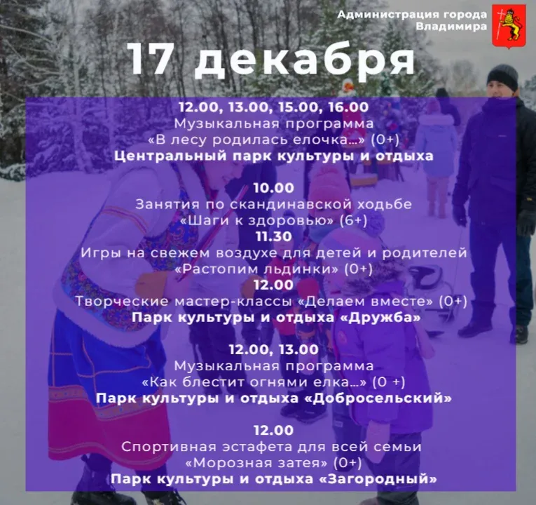 В мэрии опубликовали афишу мероприятий на предстоящие выходные дни, на 16 и 17 декабря.