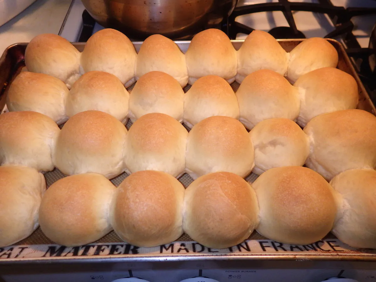 - Выпечка: Поместите противень в заранее разогретую до 200°C духовку. Выпекайте булочки около 30 минут до золотистой корочки. Когда они готовы, достаньте их из духовки и дайте немного остыть.