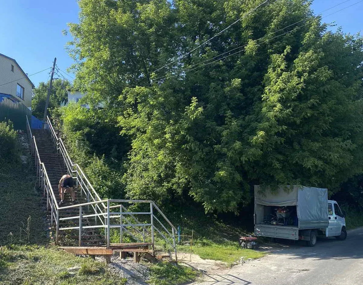 Кроме того, начат демонтаж старого основания на лестнице с улицы Клязьменская к улице Урицкого.