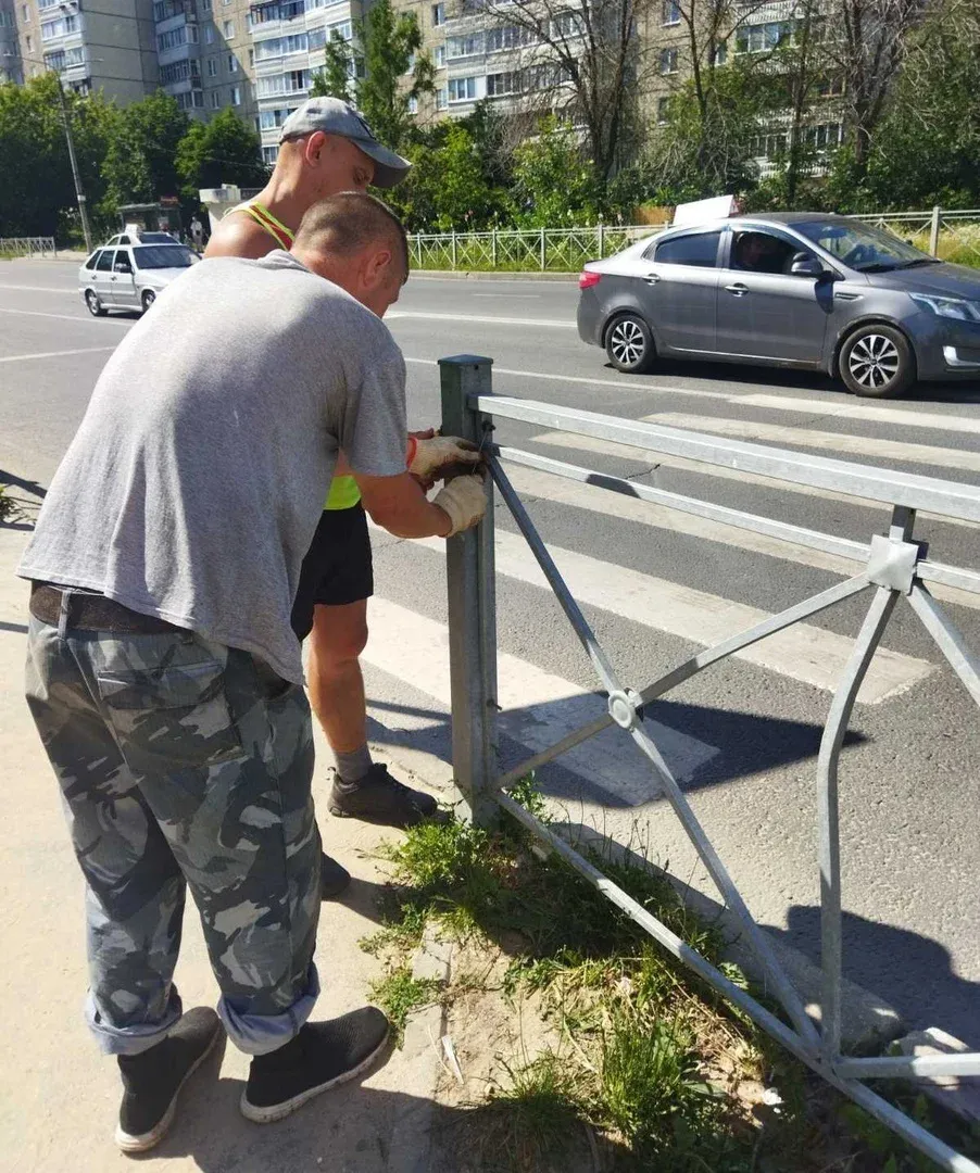 В постоянном режиме идет ремонт придорожной инфраструктуры. Например, на перекрестке улиц Нижней Дубровы и Сперанского восстанавливают металлические ограждения.