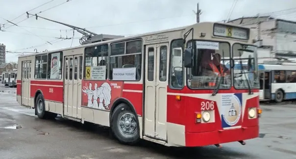 Праздничный троллейбус в ретро-стиле будет курсировать 1 мая по маршруту №8. Весь день пассажиры смогут пользоваться этим троллейбусом бесплатно.
