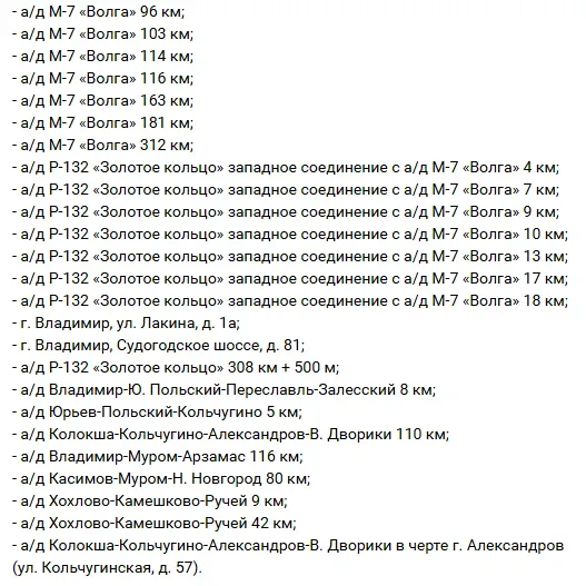 Комплексы будут работать на следующих участках автодорог: