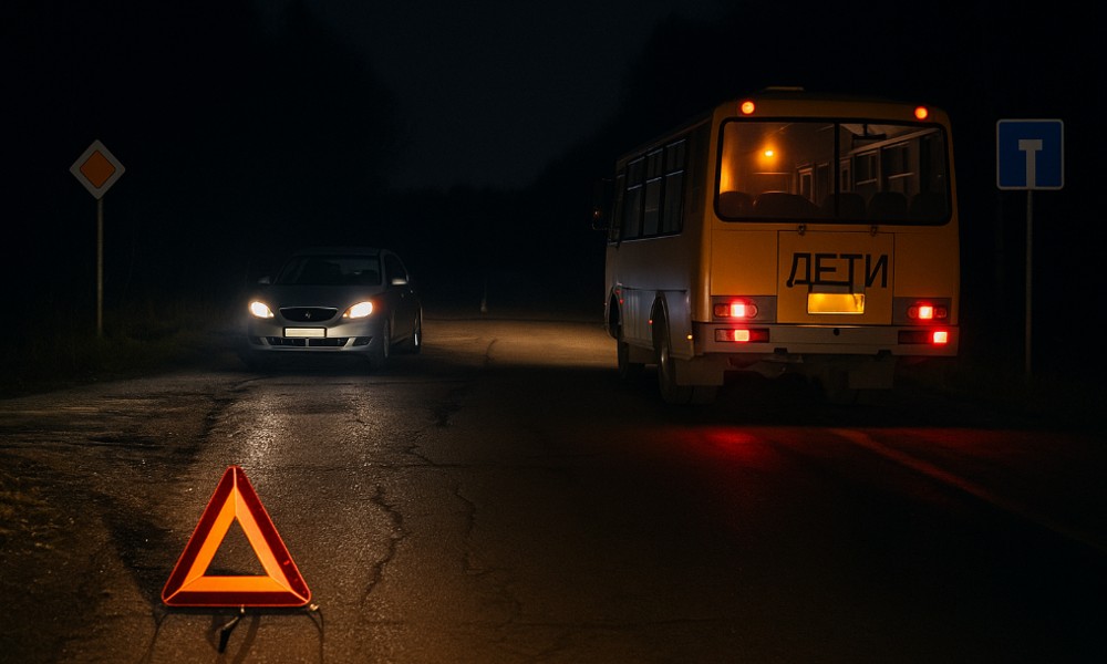 При проверке стало ясно, что сам участок давно вызывает вопросы. Это перекрёсток, где главная дорога поворачивает к СНТ «Омшаное». Люди там живут постоянно, там есть семьи с детьми, а пригородный автобус высаживает пассажиров прямо по просьбе – но места для остановки как не было, так и нет. Нет и пешеходного перехода, нет освещения, и в тёмное время суток участок становится по-настоящему опасным.
