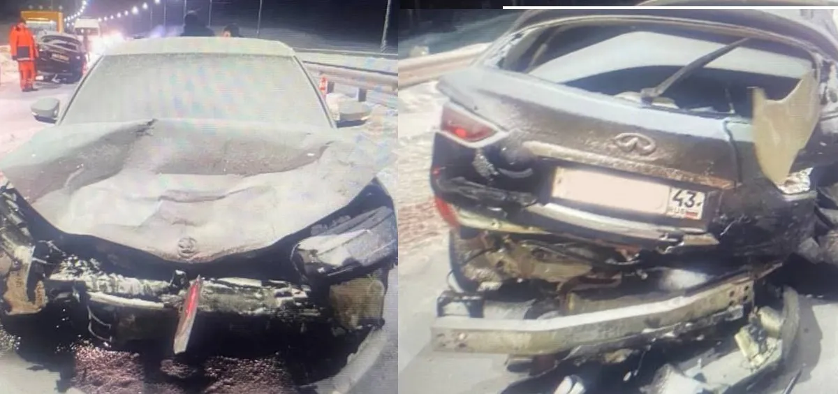 На 169 километре платной трассы М-12 в Собинском районе около 10 часов вечера произошло дорожно-транспортное происшествие. 27-летний водитель автомобиля "Инфинити", двигаясь в сторону Нижнего Новгорода, столкнулся со столбом ЛЭП. В результате аварии иномарка врезалась в попутный автомобиль "Шкода", за рулем которого находился 39-летний водитель.