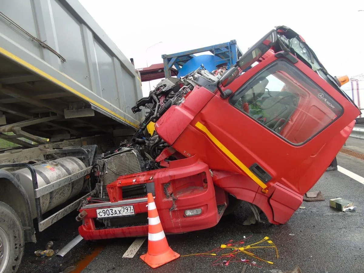 На трассе М‑12 в асфальтоукладчик влетел грузовик, погиб человек