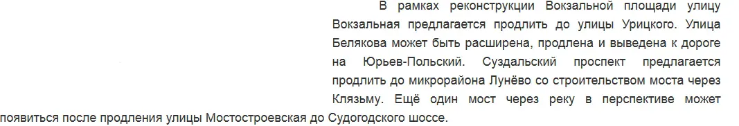 Кроме того, предлагается расширить территорию аэропорта «Семязино» до Юрьевца и проложить дорогу от него до планируемой южной магистрали. Это в дальнейшем даст не только мощный стимул для развития нескольких микрорайонов, но и обеспечит доступность спортивных объектов, запланированных на этой территории.