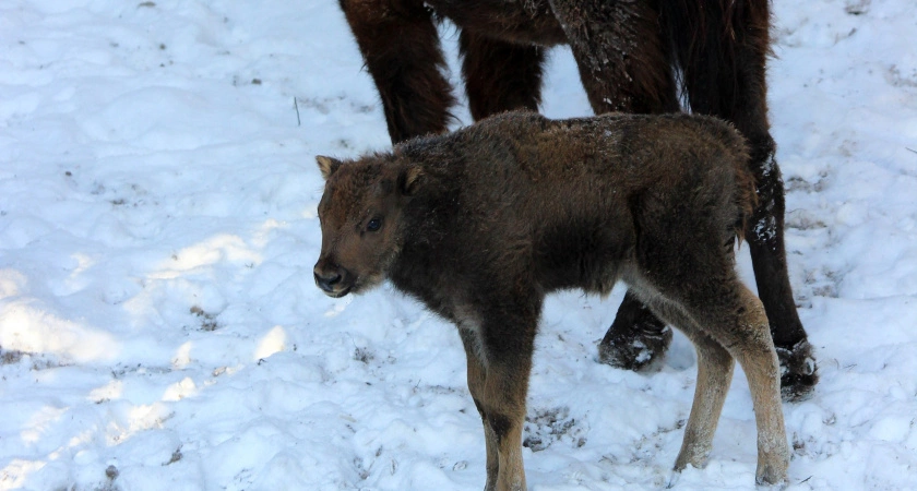 Вольер нацпарка "Мещера" в Владимирской области был создан для поселения группы европейских зубров в 2020 году. Зубренок, родившийся в ноябре 2023 года, стал первым детенышем в стаде. Его отец, по имени Мереск, был перевезен в вольер в 2019 году из Окского государственного заповедника. После наречения зубренка его имя будет занесено в племенную книгу.