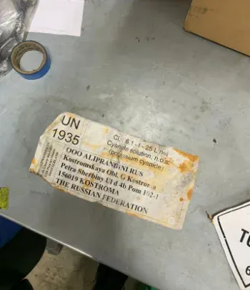 Местные жители в комментариях публикаций выложили фотографии ярлыков, найденных в округе, с адресами нескольких компаний из Новосибирска, Костромы и Ельца, а также с возможным названием выброшенных веществ - хлористый литий марки ЛХ-1, который используется, например, в производстве материалов для сварки и плавки цветных металлов.