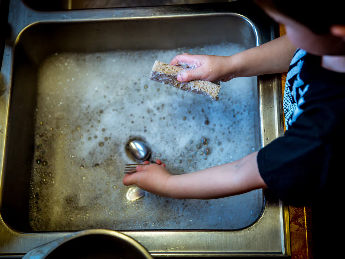 Всё начинается с подготовки раковины. В ней устанавливают специальную заглушку или пробку, после чего набирают воду, заполняя раковину на две трети от ее объема. В такую воду добавляют всего несколько капель моющего средства. Этот подход помогает значительно сократить количество используемого моющего средства и воды.