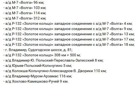 Точки размещения камер определены Управлением ГИБДД по Владимирской области на основе анализа аварийности и статистики ДТП. Водителям рекомендуется соблюдать скоростной режим и быть внимательными на указанных участках дорог.