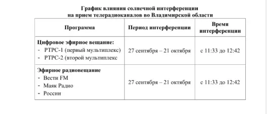 Явления интерференции могут наблюдаться во Владимирской области до 21 октября, при этом не более двух недель.