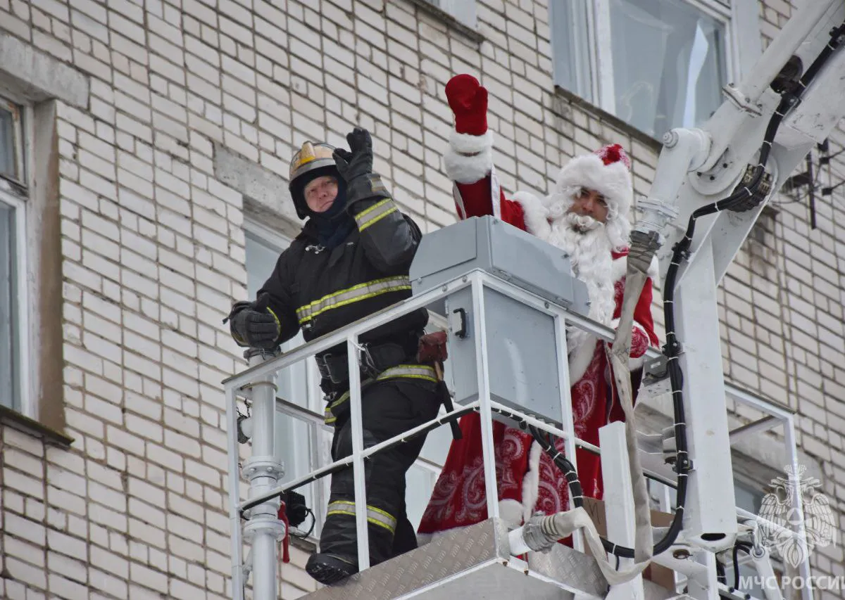 В Коврове сотрудники МЧС устроили настоящую новогоднюю сказку для маленьких пациентов городской больницы. При помощи специального подъемника Дед Мороз поднялся на шестой этаж, личноручно вручая каждому ребенку сладкие подарки. Об этом сообщили в пресс-службе регионального управления МЧС.