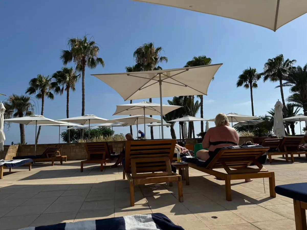 Отель действительно большой и живописный — с трёх сторон окружён морем. Но на практике передвигаться по нему утомительно: всё расположено хаотично, а из-за постоянного ветра даже короткая прогулка превращается в испытание.