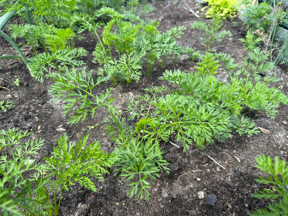 Если морковь растет слишком густо, корнеплоды будут мелкими. Оптимальное расстояние между растениями — 5-7 см.