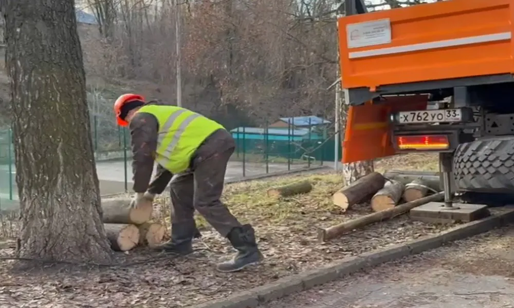 Санитарная обрезка деревьев проходит на одной из центральных улиц Владимира