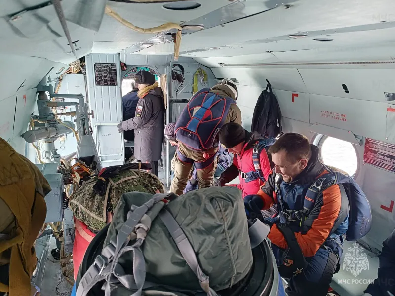 На аэродроме Александра встретили сотрудники МЧС России из различных федеральных спасательных центров, тренирующиеся в десантировании с вертолета. Сотрудники МЧС России продемонстрировали Александру парашюты и другое спасательное оборудование, объяснив, что навыки десантирования необходимы им для спасения людей в труднодоступных районах.