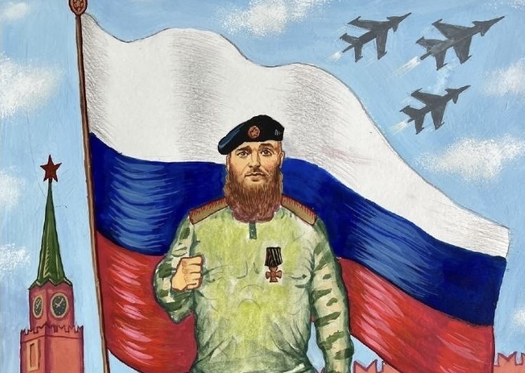 Также в этом конкурсе особо отличилась 12-летняя Елизавета Петрова из Собинской детской художественной школы им. К.Н.Бритова. Она представила работу «Мой папа, кавалер Георгиевского креста, участник СВО, Захаров Руслан».