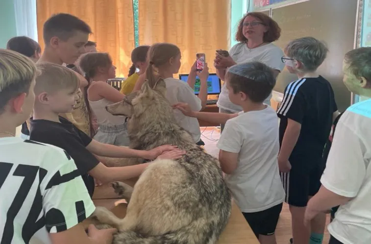 Особый интерес вызвала презентация, посвящённая волкам. Сотрудники привезли с собой чучело хищника, рассказали о его повадках, роли в экосистеме и безопасном поведении при возможной встрече с дикими животными.