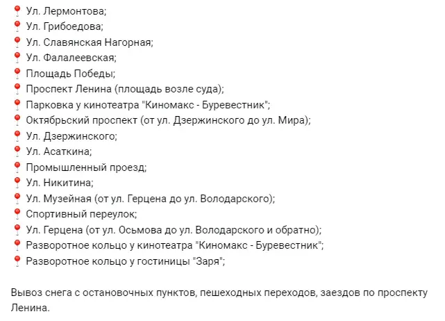 Список улиц: