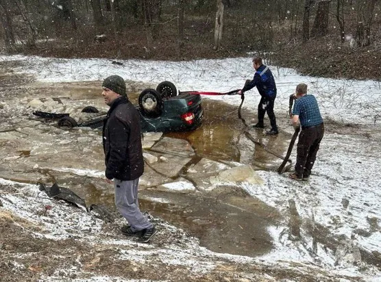 Авария произошла 17 марта у деревни Бабино . Водитель встречного автомобиля не справился с управлением на повороте, съехал в котлован с водой, машина перевернулась на крышу, пробила лёд и начала уходить под воду.