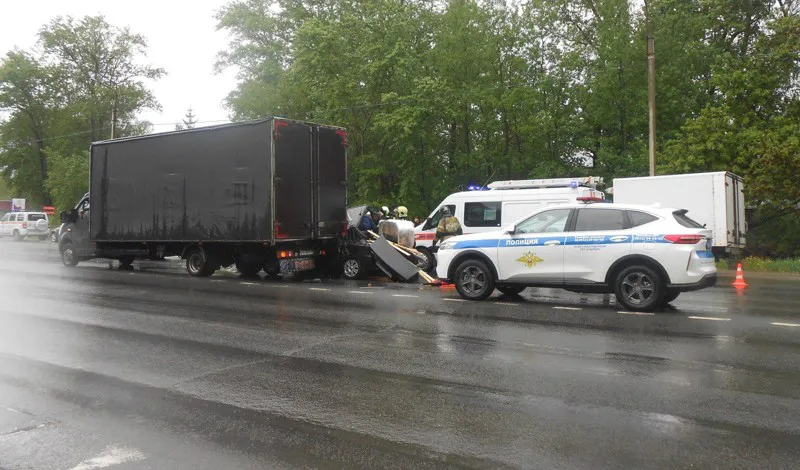 Легковой автомобиль двигался в сторону Москвы, когда произошло столкновение с грузовиком. Сотрудники Госавтоинспекции проводят административное расследование, устанавливая все обстоятельства и причины дорожно-транспортного происшествия.