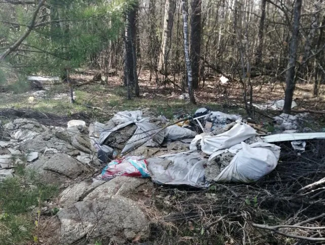 Нарушение обнаружили в ходе проверки. В лесу нашли более 1,1 тысячи квадратных метров отходов, среди которых строительный мусор, покрышки, крупногабаритные предметы и древесные остатки.