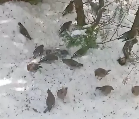 В Юрьев-Польском районе госохотинспектору удалось запечатлеть необычную картину – целая стая свиристелей устроила трапезу среди зарослей можжевельника. Как сообщили в правительстве региона, птицы охотно поедали ягоды, демонстрируя завидный аппетит: ягоды исчезали с веток с поразительной скоростью.