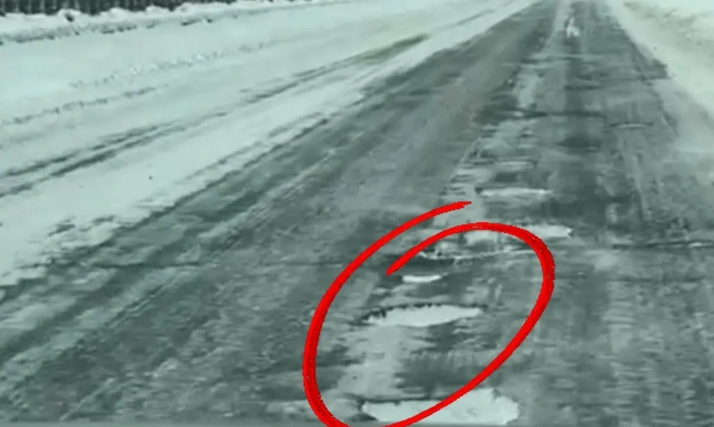 Разрушенное дорожное покрытие, выбоины и наледь создают реальную угрозу для водителей на одной из самых оживлённых зон региона.