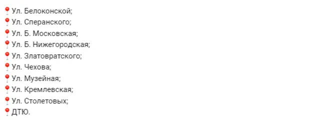 Список улиц, с которых нужно убрать машины: