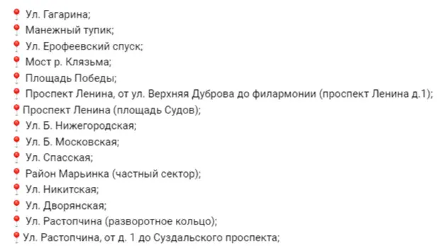 Список улиц, с которых нужно убрать машины:
