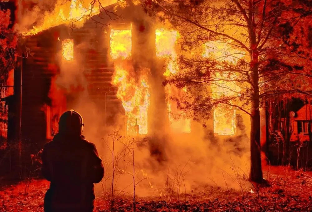 В Александровском районе пожар уничтожил двухэтажный дом