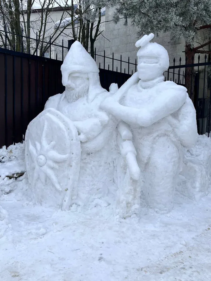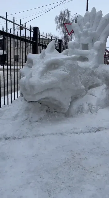 В прошлый раз Александр соорудил из снега символ 2024 года — дракона. Также именно он был автором фигур бойца СВО и русского богатыря.