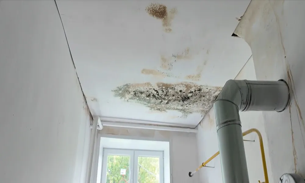 Проблема тянется ещё с весны. Потолок обваливается в нескольких местах, старая проводка при намокании может дать замыкание, и люди боятся, что это закончится пожаром.