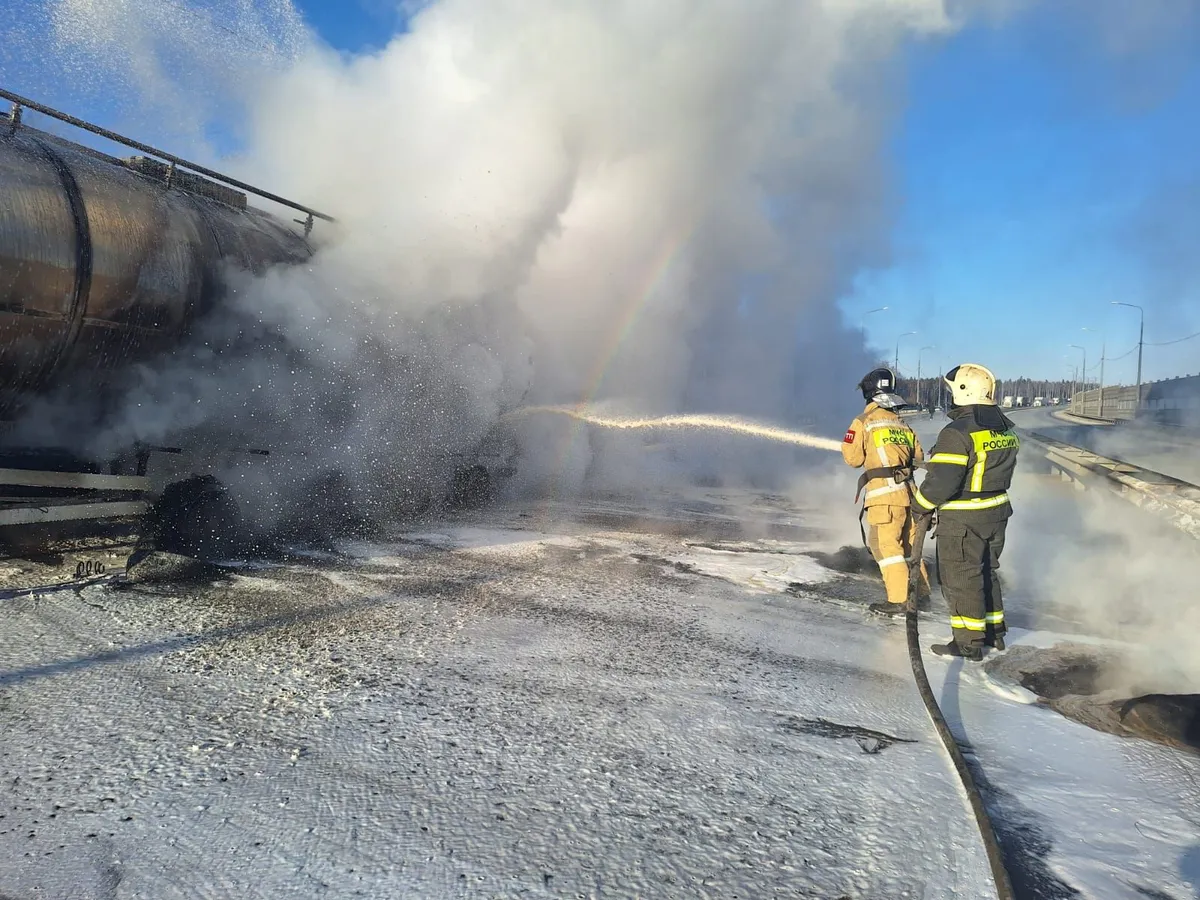 В ДТП между фурой с маслом и легковушкой на трассе М-12 вспыхнул пожар